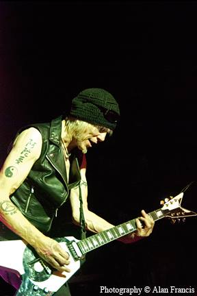 The crowd started getting energized with the MSG songs and really blew up when Into The Arena began. You could tell the band were feeding off the energy of the fans as they kept rocking stronger and stronger as the night went on. Michaels' playing was again exceptional for most of the show, but at times he struggled to get to 'the next level' with his playing in the improvised parts of some of the solos. That problem went away by the time the UFO mini-set started, and his leads just soared like Angels out over the crowd. Again Wayne, Rev and Doogie showed great stage chemistry, with Wayne sporting his new Trident guitar prominently...what an awesome sounding and badass looking guitar!