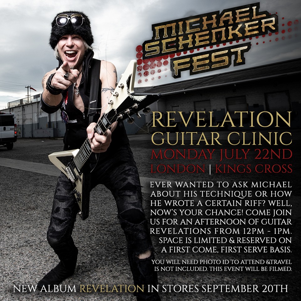 [07/15/2019 update No.2]Have you ever wanted to ask Michael how he wrote a riff or what techniques he uses to warm up? How about questions about his gear and touring? Well, you're in luck! Come and join us for an afternoon of guitar revelations from 12pm - 1pm on Monday the 22nd of July near Kings Cross in London. Space is super limited and reserved on a first come, first serve basis. Please register your attendance here and we will confirm your place ASAP: http://nblast.de/SchenkerGuitarClinic.[07/15/2019 update]
