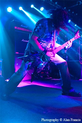 The crowd started getting energized with the MSG songs and really blew up when Into The Arena began. You could tell the band were feeding off the energy of the fans as they kept rocking stronger and stronger as the night went on. Michaels' playing was again exceptional for most of the show, but at times he struggled to get to 'the next level' with his playing in the improvised parts of some of the solos. That problem went away by the time the UFO mini-set started, and his leads just soared like Angels out over the crowd. Again Wayne, Rev and Doogie showed great stage chemistry, with Wayne sporting his new Trident guitar prominently...what an awesome sounding and badass looking guitar!